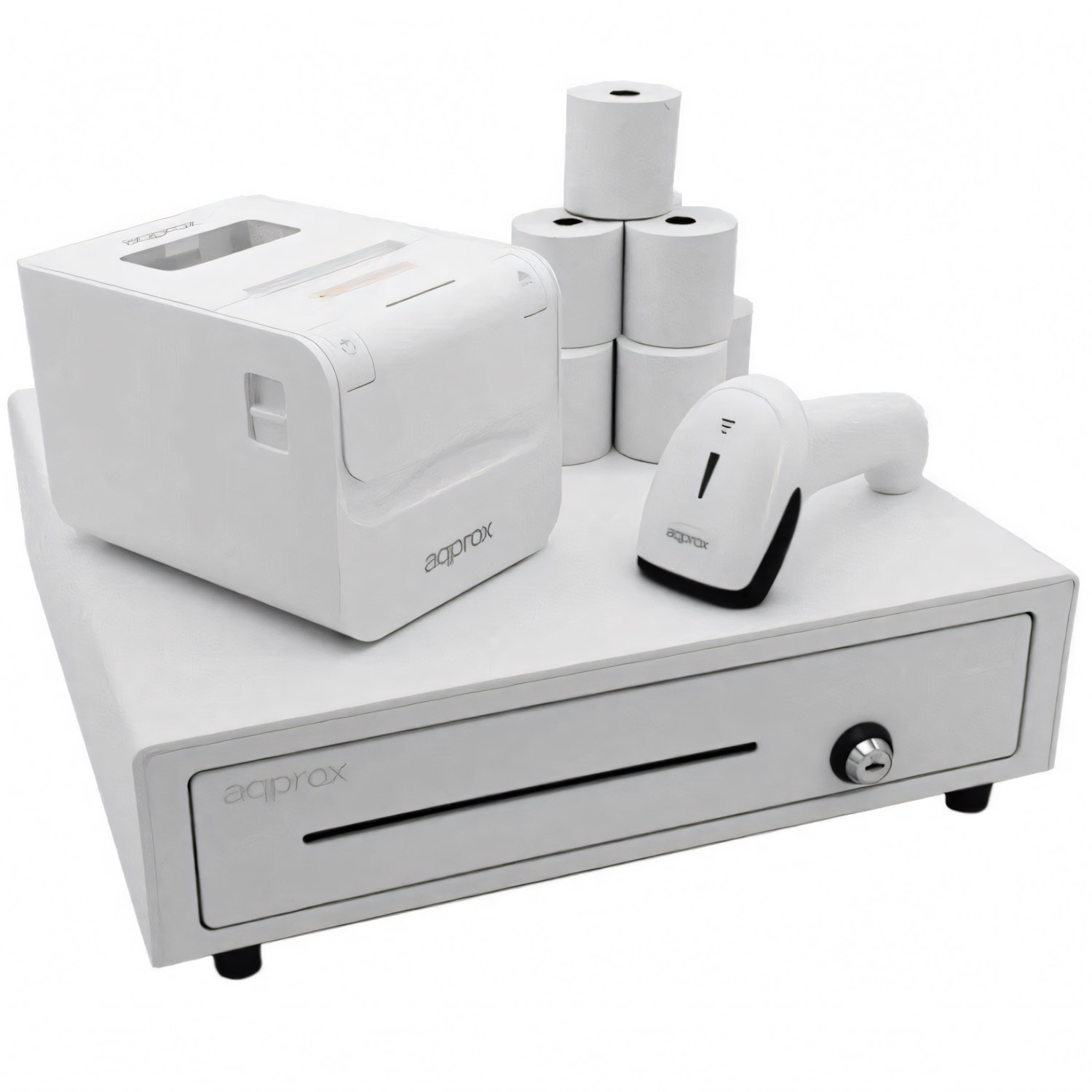 Este combo proporciona todo lo necesario para la facturación y gestión de ventas en un solo paquete. Su diseño en blanco le da un toque moderno y profesional, ideal para cualquier tipo de negocio.